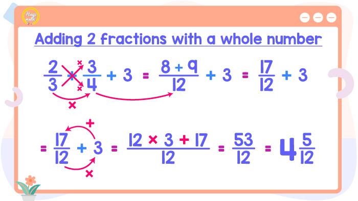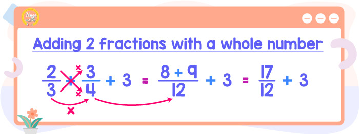 Today I will show you how to add 2 fractions with a whole number. It’s easy and like any other addition of fractions that we have seen in previous videos.  There are several methods to add a whole number and 2 fractions, here I will show 2 of them, choose your favorite!