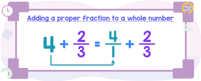 For using this method, we need to remember that a mixed number is the sum of a whole number and a proper fraction, and that is exactly what we have in this case, given that 4 is a whole number and 2/3 is a proper fraction. So, we can rewrite our fraction addition as a mixed number.